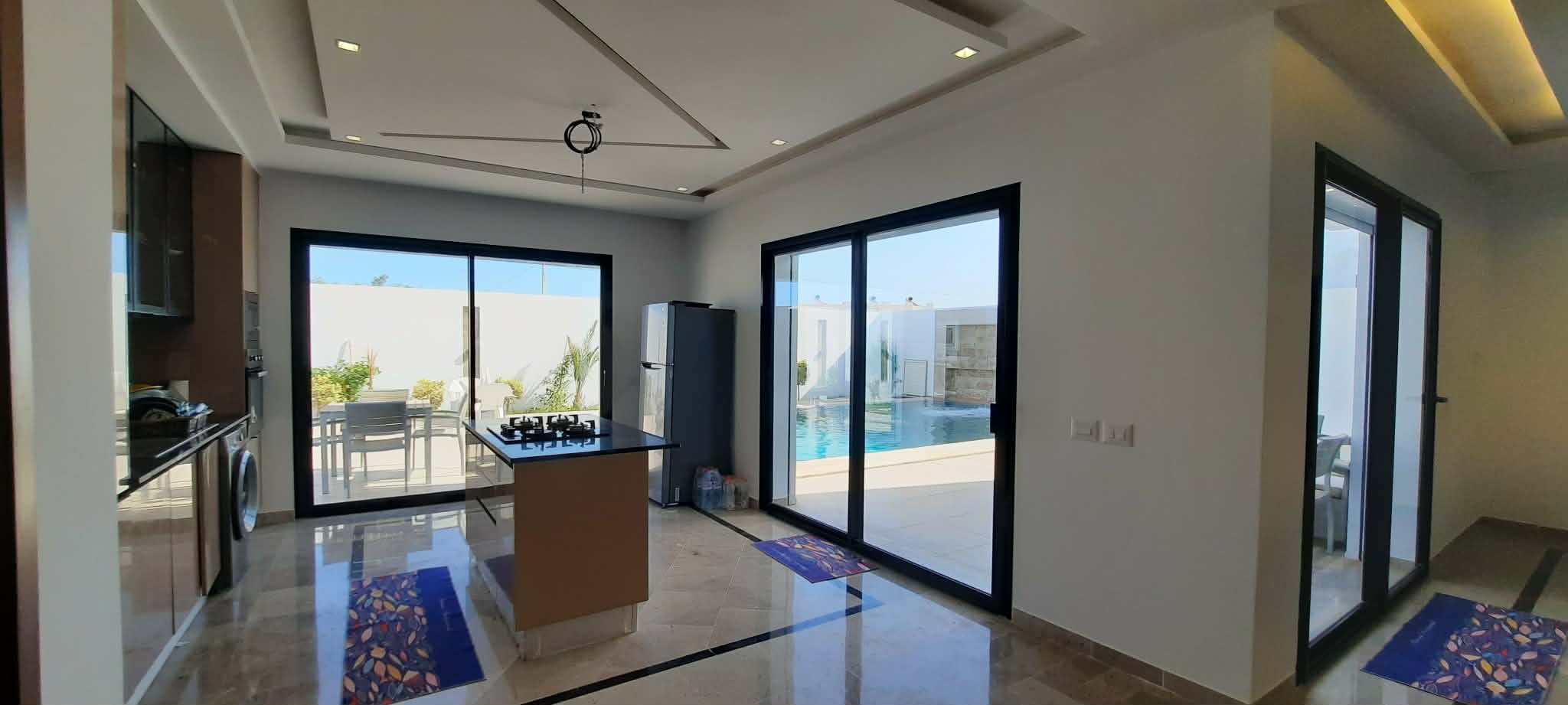 Votre agence immobilière Moncef Attia vous propose cette superbe villa située à Tazdaine, à seulement 4 minutes en voiture des plages paradisiaques de Saguia et Yati, parmi les plus belles de l'île de Djerba.