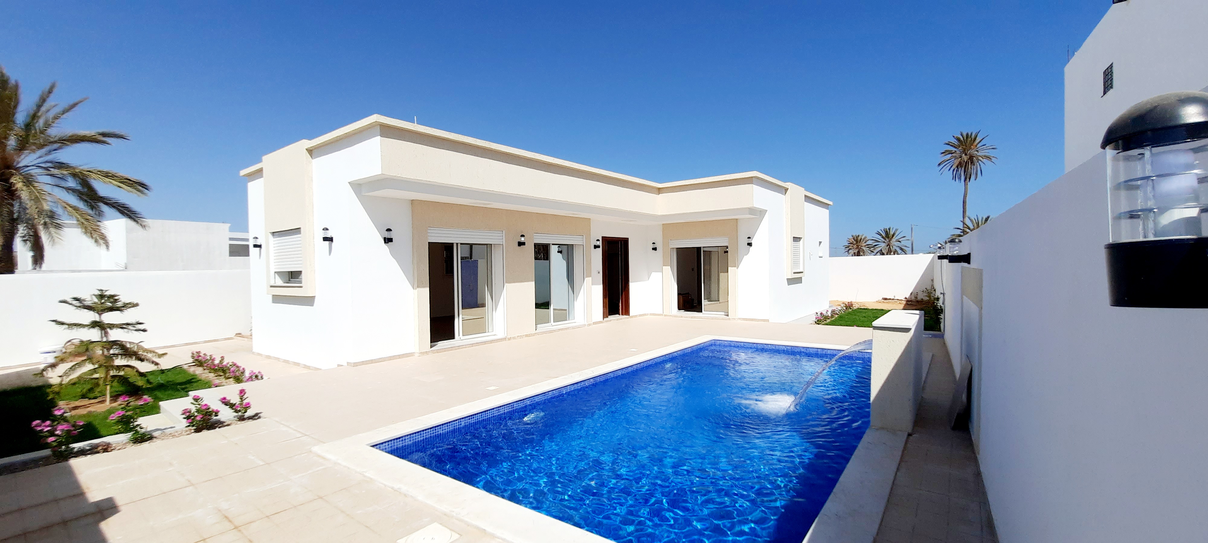 On met en vente cette villa de plan-pied située à quelques minutes de çentre ville Midoune et a 7 minutes de la plus belle plage de l’Ile de Djerba saguia et yati