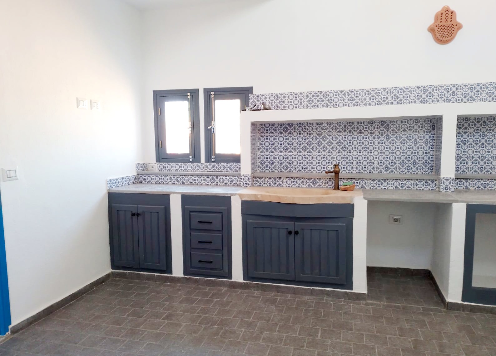 Sublime houch,avc 5 chambres,salon moderne cheminée ,3 sdb,cuisine cagibi,entrée sguifa Djerbienne, un bijou d'architecture. Matériaux de qualités, robinetterie et sanitaires de qualités, plus de 270m carrés habitable et patio de plus de 50m intérieur avc barbecue..